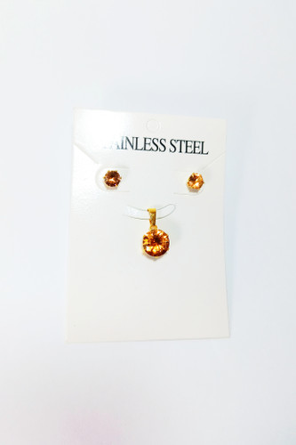نیم ست گردن آویز و گوشواره میخی استیل رنگ ثابت