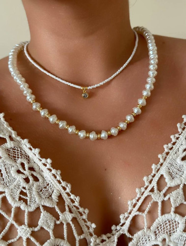 گردنبند زنانه استیل طرح ماری دولاین مروارید دار